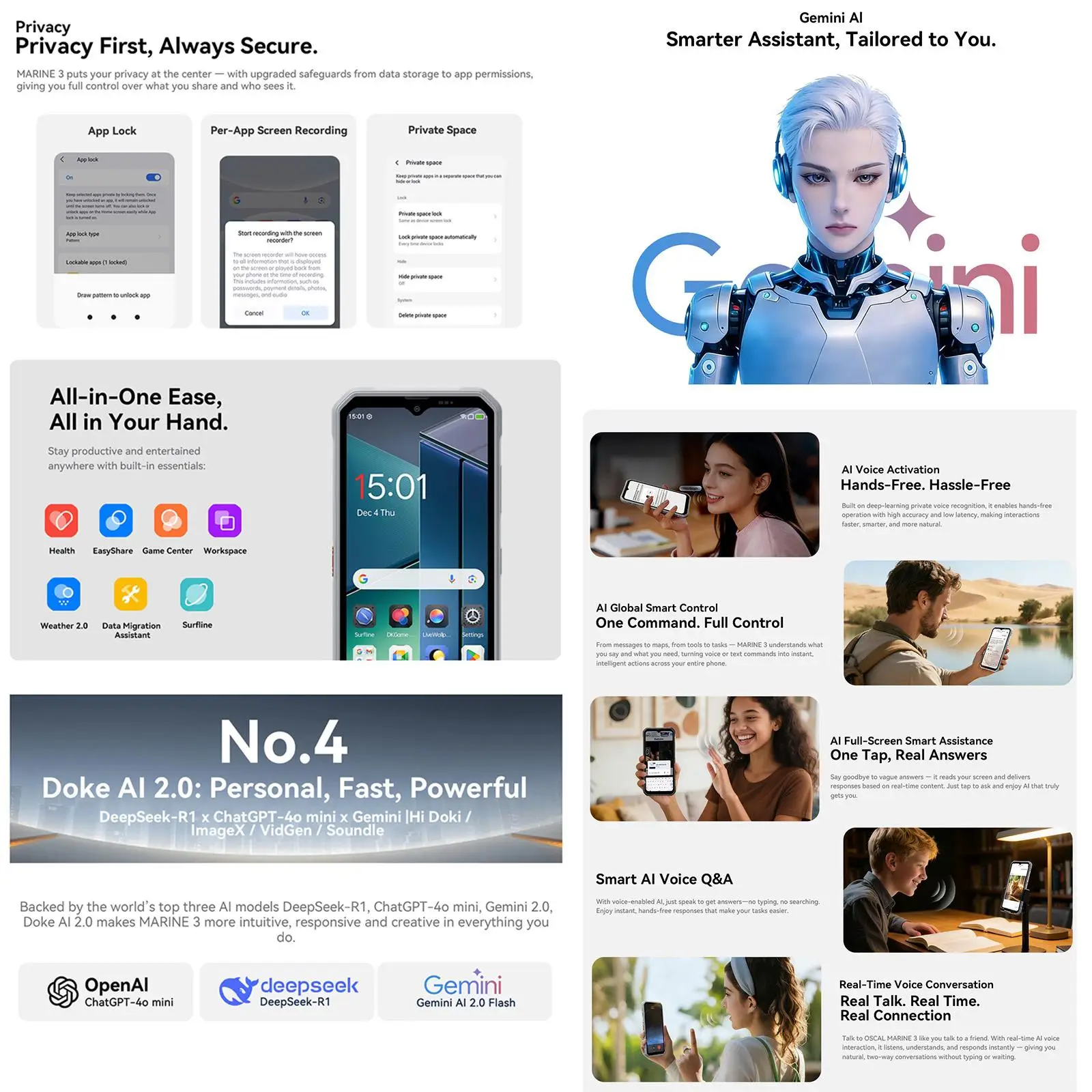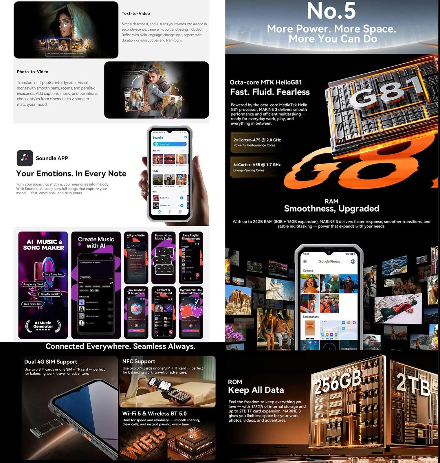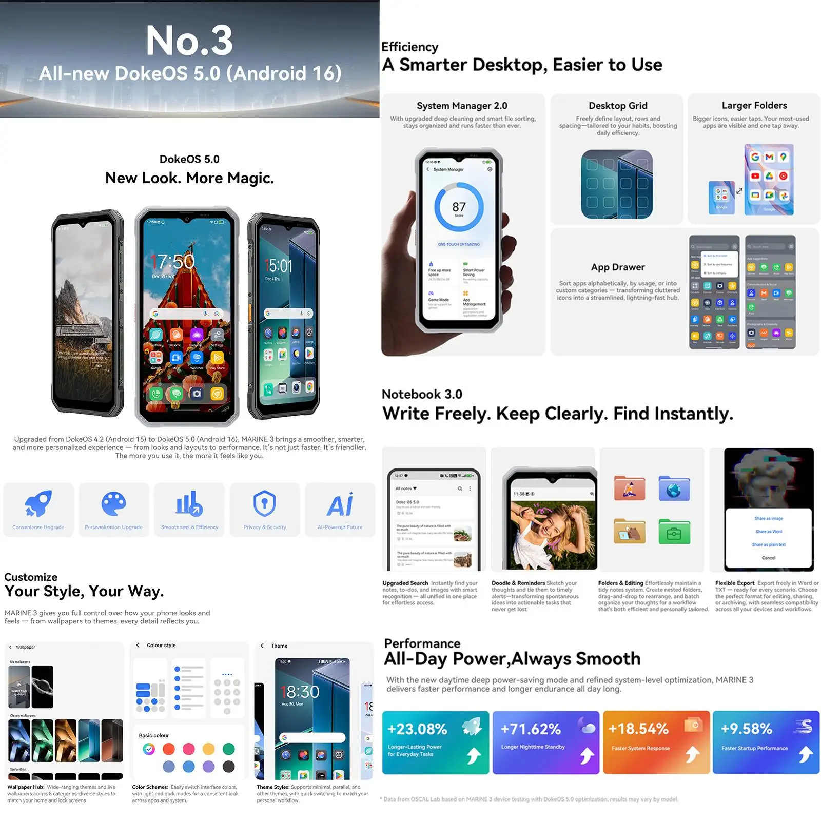 The Oscal MARINE 3 is a modern rugged smartphone designed for everyday reliability and advanced features. Combining a sleek design with night vision capability, expandable performance, and all-day battery life, it's built for users who demand more from their mobile device.