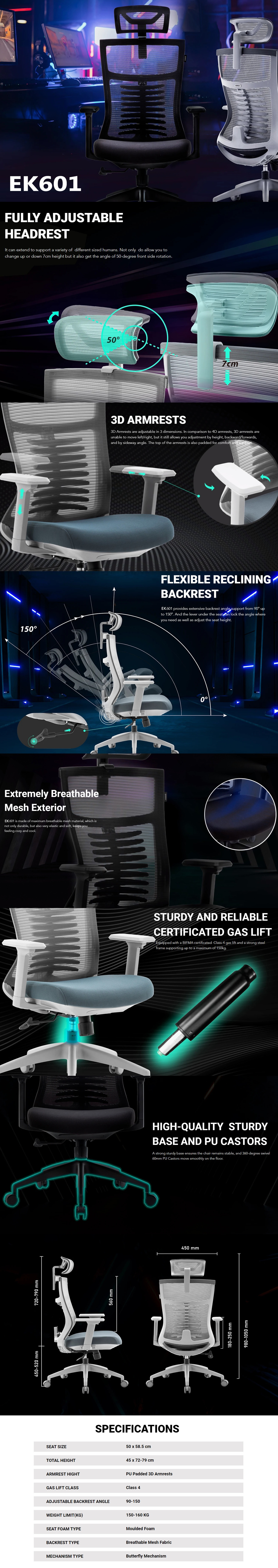 RAIDMAX Drakon EK601BK Gaming Chair, Fabric, Up to 150kg, 3D Adjustable Armrests, 150deg Tilting, Head & Lumbar support, Black